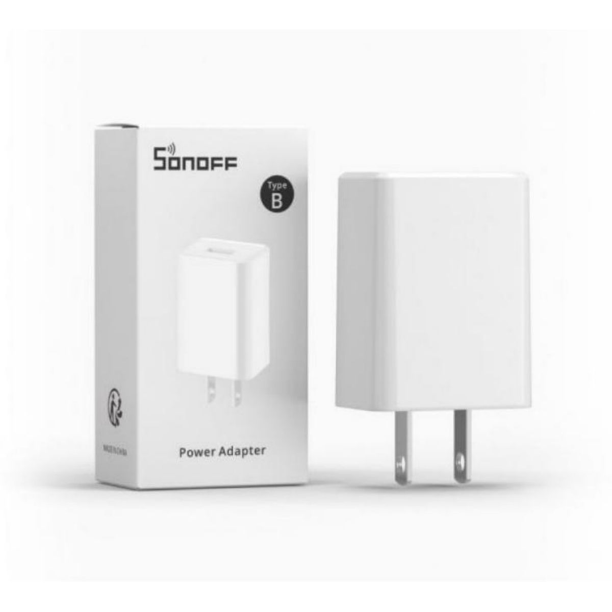 Adaptador AC de alta eficiencia y seguridad, compatible con dispositivos que requieren alimentación de 5 V CC. Cumple con el estándar de eficiencia energética DoE Nivel VI, ideal para productos como SONOFF iHost, SONOFF L3 Pro Light Strip, Cam Slim, RF BridgeR2 433, ZB Bridge Pro, entre otros.