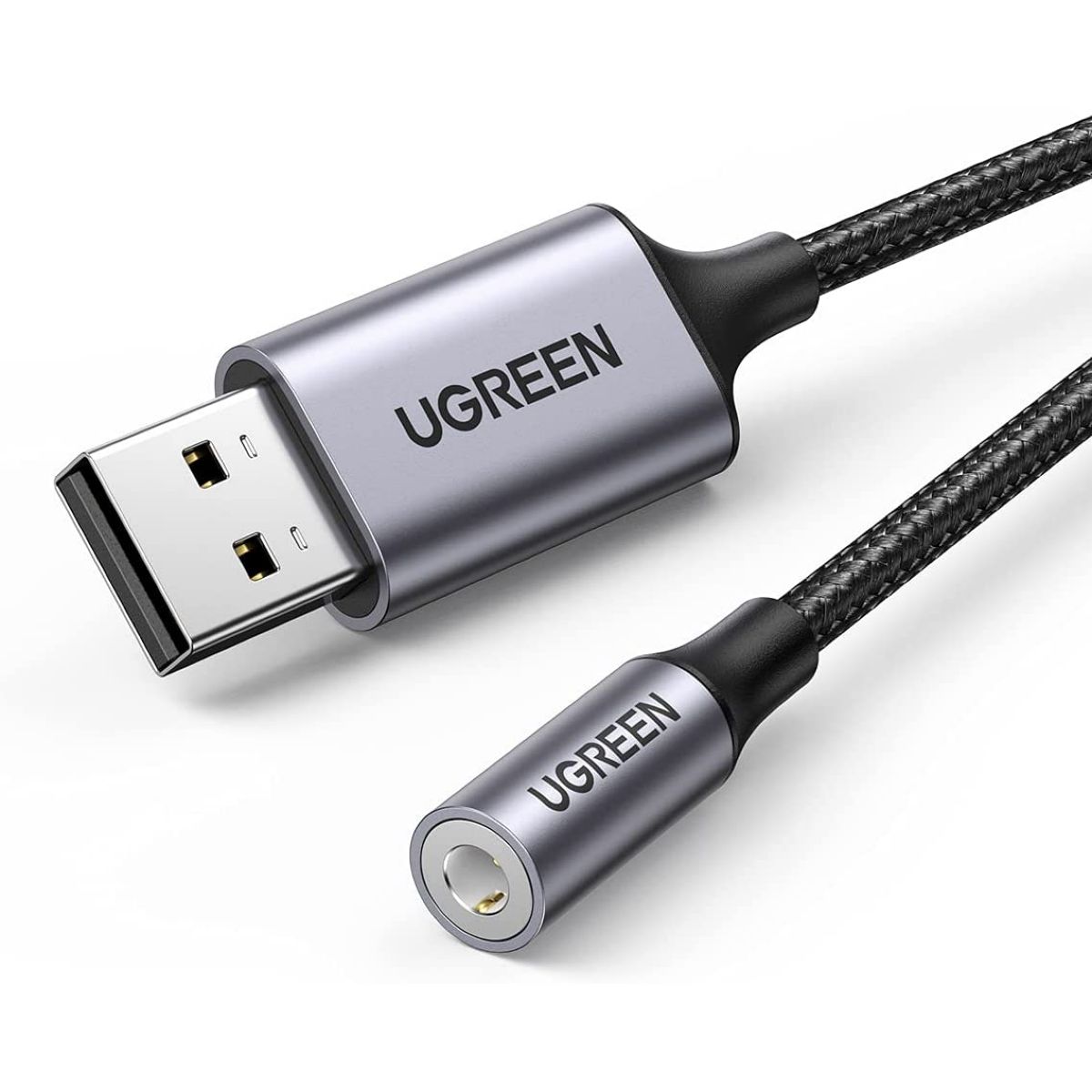 Adaptador Ugreen audio USB a jack 3.5mm, frecuencia de hasta 24 bits/96Hz, aluminio excelente calidad...
